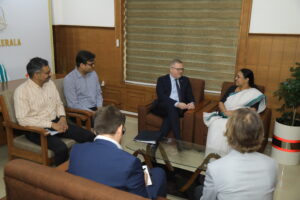 തിരുവനന്തപുരം: ആരോഗ്യ വകുപ്പ് മന്ത്രി വീണാ ജോര്ജുമായി വെയില്സ് ആരോഗ്യ വകുപ്പ് മന്ത്രി (ഹെല്ത്ത് ആന്റ് സോഷ്യല് കെയര് കാബിനറ്റ് സെക്രട്ടറി) ജെറമി മൈല്സ് സെക്രട്ടറിയേറ്റില് ചര്ച്ച നടത്തി. കൂടുതല് ആരോഗ്യ പ്രവര്ത്തകരെ വെയില്സിലേക്ക് റിക്രൂട്ട് ചെയ്യുമെന്ന് ജെറമി മൈല്സ് പറഞ്ഞു. ദന്തല് ഡോക്ടര്മാര്ക്കും, സൈക്യാട്രി നഴ്സുമാര്ക്കും വെയില്സില് ഏറെ സാധ്യതയുണ്ട്. ആരോഗ്യ രംഗത്ത് കേരളവുമായുള്ള ബന്ധം ശക്തിപ്പെടുത്തും. വെയില്സിലെ സ്കില് ഷോര്ട്ടേജ് പരിഹരിക്കുന്നതിന് കേരളത്തിലെ സ്കില്ഡ് ക്വാളിഫൈഡ് പ്രൊഫഷണല്മാരുടെ സേവനം പ്രയോജനപ്പെട്ടു. കേരളത്തിലെ ആരോഗ്യ പ്രവര്ത്തകരുടെ കഴിവും സേവന സന്നദ്ധയും കാരണം വെയില്സില് ധാരാളം അവസരങ്ങള് ലഭ്യമാണെന്നും അദ്ദേഹം പറഞ്ഞു.