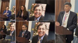 Dr. Udaya Shivangi expressed her gratitude to all “congressional leaders, doctors, and friends who made this tribute possible. A special acknowledgment to the American Association of Physicians of Indian Origin (AAPI), the Indo-American Political Forum for Education—which Sampat worked so hard to establish with a distinct name as Indian American Political rather than Asian—and the American Hindu Coalition for their support. A heartfelt thanks to AMEC (American Multi-Ethnic Commission USA) and Global Eye Magazine President Dr. Vijay Prabhakar and his team. This tribute would not have been possible without your efforts. From the bottom of my heart, thank you for honoring him.”