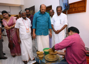 പുതിയ കാലത്തിനനുസരിച്ച് കളിമൺ പാത്ര നിർമാണ മേഖലയിൽ നവീന സാങ്കേതിക വിദ്യകൾ ഉപയോഗിക്കണമെന്ന് മന്ത്രി പറഞ്ഞു.കോവിഡിന് ശേഷം പ്രകൃതി സൗഹൃദ ഉൽപ്പന്നങ്ങൾ ഉപയോഗിക്കുന്നവരുടെ എണ്ണം വർധിച്ചു. സ്വാഭാവികമായി വിപണി ആവശ്യങ്ങൾക്കൊപ്പം നിർമിതിയുടെ രൂപം, ഭംഗി എന്നിവയിലൂടെ ഉപഭോക്താവിനാവശ്യമായ രീതിയിൽ ഉൽപ്പന്നങ്ങൾ എത്തിക്കാൻ കഴിയണം. കളിമൺ എടുക്കുന്നതിൽ നിലവിൽ നിയന്ത്രണങ്ങളുണ്ട്. എന്നാൽ 50 ടൺ വരെ കളിമണ്ണ് എടുക്കുന്നതിന് അനുമതി നൽകുന്നുണ്ട്. കളിമൺ പാത്ര നിർമാണ തൊഴിലാളികളുടെ താമസ സ്ഥലത്തിന് ഉടമസ്ഥാവകാശമില്ലാത്തവർക്ക് നിയമപരമായി അത് ലഭിക്കുന്നതിനുള്ള നടപടി സർക്കാർ സ്വീകരിക്കുന്നുണ്ട്. ഓൺലൈൻ സംവിധാനമടക്കം ഉപയോഗിച്ച് വിപണി സാധ്യതകൾ ഉപയോഗിക്കണമെന്നും മന്ത്രി പറഞ്ഞു.