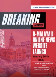 അമേരിക്കയിലെ മലയാളികളുടെ സാംസ്കാരിക കേന്ദ്രമായ ഡാലസിൽ നിന്നും തുടക്കം കുറിച്ച “ഡി മലയാളി” ഓൺലൈൻ ദിനപത്രം അതിന്റെ പ്രഥമ വർഷം പൂർത്തിയാക്കുമ്പോൾ, ആഗോള മലയാളി സമൂഹത്തിനിടയിൽ വിശ്വസനീയമായ ഒരു വാർത്താ സങ്കേതമായി മാറിക്കഴിഞ്ഞു. സത്യസന്ധവും സുതാര്യവുമായ മാധ്യമപ്രവർത്തനം എന്ന ലക്ഷ്യത്തോടെ ആരംഭിച്ച ഈ സംരംഭം ഇന്ന് പ്രവാസി മാധ്യമ ചരിത്രത്തിലെ ശ്രദ്ധേയമായ ഒരു അധ്യായമാണ്.